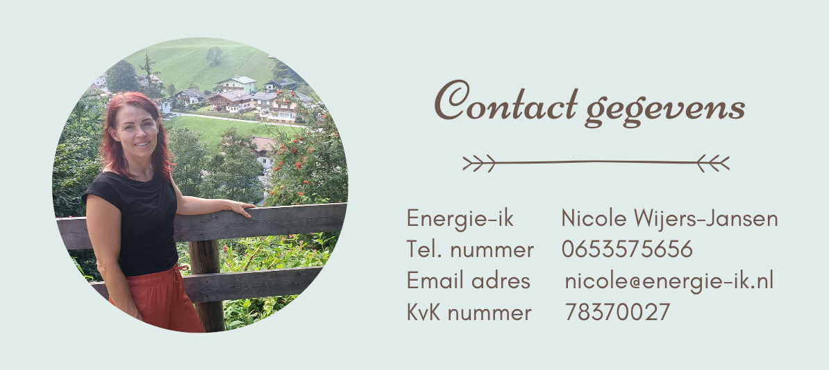 Heel veel succes in jou persoonlijke veranderproces. Als je daarbij ondersteuning zoekt kun je altijd een gratis Energy-talk-sessie met me aanvragen. Dan kunnen we onder het genot van een theetje bespreken wat de mogelijkheden zijn.